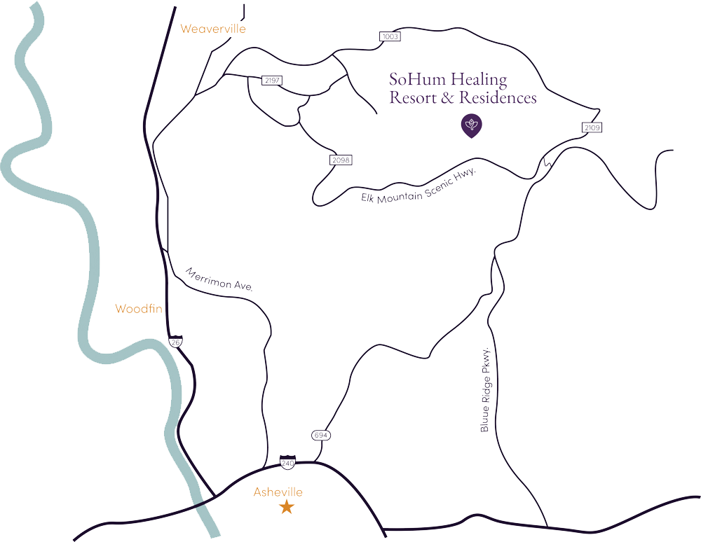 Tucked away in your personal sanctuary, yet still within 25 minutes of charming downtown Asheville, this community provides everything you have been looking for. The SoHum Residences sit adjacent to our world-renowned SoHum Mountain Healing Resort, where you have access to the ancient healing practices of Ayurveda, yoga classes, elevated dining, and more. We invite you to arise everyday into a community of co-dreamers for humanity, seekers of the inner potential, and stewards of the planet.